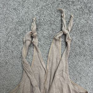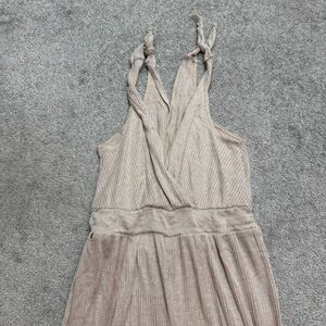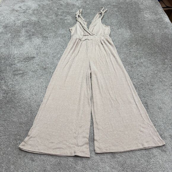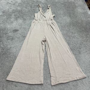 Kennedy Kened IK Ribbed Knit Wide Leg Wrap Jumpsuit Womens Small Beige Tie Strap