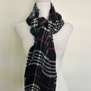 Kennedy Scotland 100% Cashmere Scarf Black Red Plaid Tartan Fringe Unisex Soft