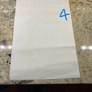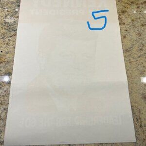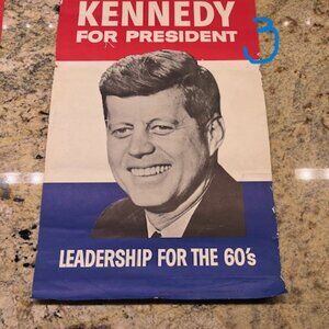 Kennedy for President Posters: bold red, white and blue. Iconic image and slogan. You can see the pin stripes on his suit! Bottom of poster says: National Democratic Committee, Washington 6, D.C. & logo on far right. Poster 1, 5 & 6 are in the best condition. See numbers on photos above.