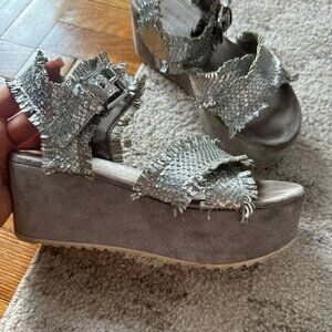 Kennel & Schmenger Metallic Silver Textured Platform Sandals – Size 38 (fits lik