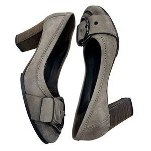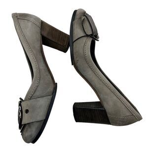 Kennel & Schmenger Women's Leather Studded Buckle Block Heel Pumps Gray Size 5.5