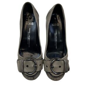 Kennel & Schmenger Women's Leather KOS Buckle Block Heel Pumps Gray Size 5.5