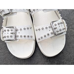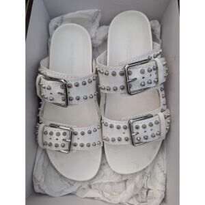Kennel Schmenger Women's Studded Slides Sandals Sz 8 Natural Calf Milk Silver. Shoes are in good condition but do have some signs of wear. See all photos of exact condition and ask any questions prior to purchase. Shoes originally retailed for $360 and will ship in original box.
