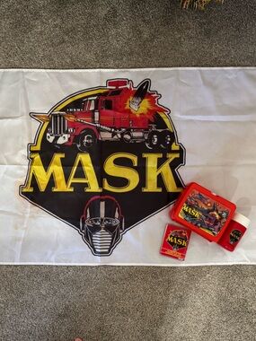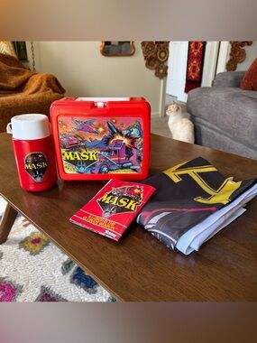 Mask (Mobile Armored Strike Kommand) bundle of Lunchbox with thermos, flag (see photos for condition), and catalog/fold out poster.