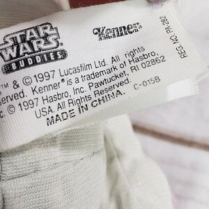 This Kenner Star Wars Buddies R2-D2 plush toy is a must-have for any Star Wars fan. Made in China in 1997, it is a vintage collectible that will add to any collection. The 6 inch beanbag plush toy is flawed (red marker stain on right arm), but it does not detract from its charm.