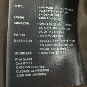 Good morning, belgis007! I've added a pic of the tag that indicates the various materials. For quick reference, the outer layer of the coat is 60% wool, but the lining is 100% polyester. I've also added a pic of the bust measurement when put on a mannequin. For quick reference, the bust is approximately 34". I hope this helps. Also, if you are interested in purchasing, let me know and I will lower the price to $30 and can ship today. Have a good Saturday!