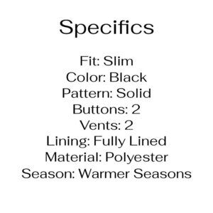 Kenneth Cole 38R Black Solid 2-Button Sport Coat Blazer Jacket P355