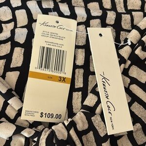 Kenneth Cole 3X Sleeveless Gathered Front Fitted Midi Dress Black Tan Print NWT