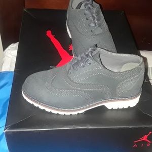 NAVY BLUE ,WHITE SOLE touch of Brown, toddler boys dress shoes, size 11,worn only once to prom.