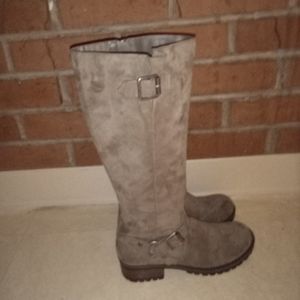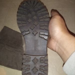 Brand New never worn. Bought it, tried it on and it didn't fit. Light brown suede material. Comes with original box