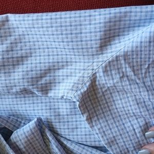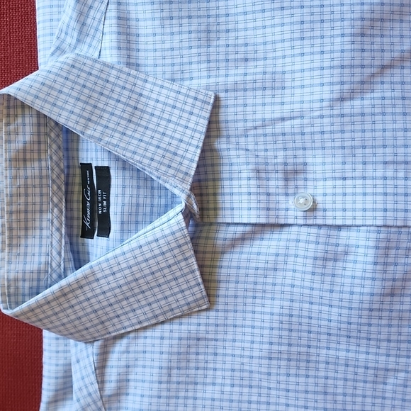 Slim fit, button down, sz 16 34/35, non iron. (slight discoloring at pit area as shown)