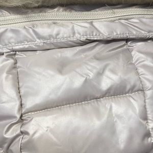 Good condition used one time. Can use it without fur. Very elegant and modern.Beautiful color in person.If your size medium it fits.Questions? Leave a comment below!