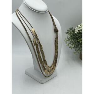 Kenneth Cole Antique Gold Tone Layered Leaf Multi Strand Necklace