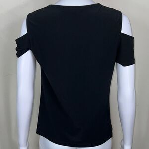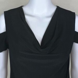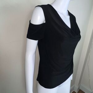 Kenneth Cole Black Cold Shoulder Drape Neck Blouse