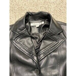 Kenneth Cole Black Faux Leather Trench Coat – Belted Longline Moto Chic M