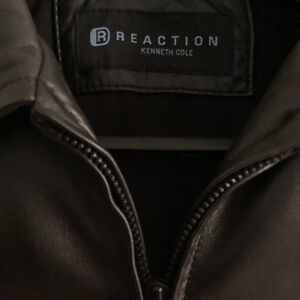 Kenneth Cole Reaction Black leather jacket in men’s size small worn just a couple of times with no flaws seen in the leather. Has two outside pockets and one inside plus a leather snap pocket. The approximate measurements are 29” long measured from top of collar to bottom of jacket and sleeve length is approx 25”.