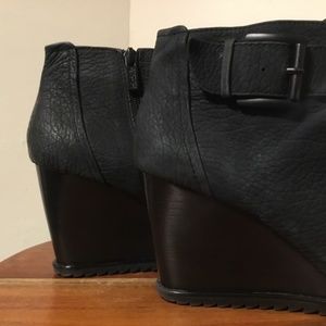 Kenneth Cole Black Leather Wedge Boot Size 8.5 R1 B