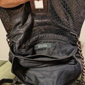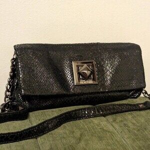 Kenneth Cole Black Snakeskin Embossed Clutch Shoulder Bag Purse