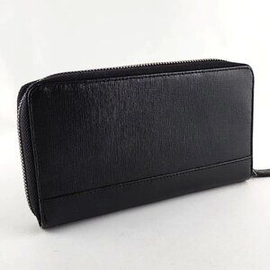Kenneth Cole Black Zip Around Continental Faux Textured Leather Wallet