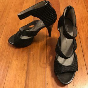Kenneth Cole Black Zip-up Peep Toe Heels 9.5M
