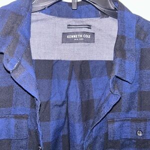 Kenneth Cole Black and Blue Checked Flannel Shirt. Size large