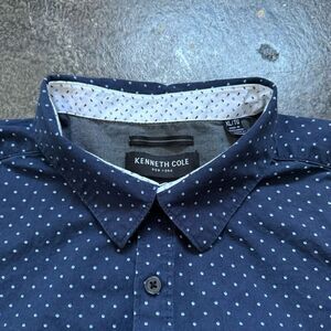 Kenneth Cole Blue Button Down Shirt Size XL 100% Cotton Collared Preppy