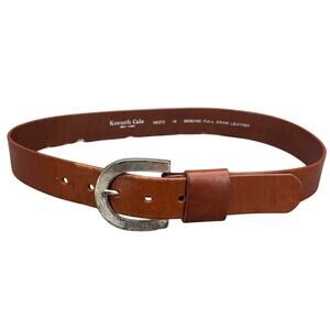 Elevate your Western style with this Kenneth Cole brown leather belt! The silver horseshoe buckle adds a touch of classic charm.