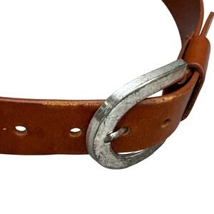 Kenneth Cole Brown Leather Silver Horseshoe Buckle Western Belt 27.5"-31.5"