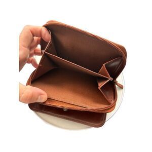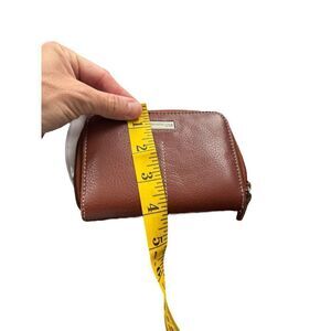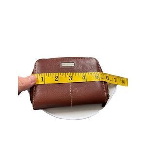 High-quality Kenneth Cole wallet featuring a zip-around closure. Designed in rich brown leather with multiple card slots and snap pockets for organized storage.