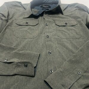 Kenneth Cole Button Down Dress Shirt, gray slim fit size medium
