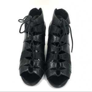 Kenneth Cole Calf Hair Lace Up Open Wedges Booties