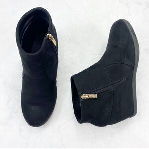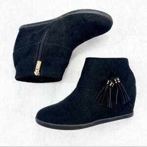 Kenneth Cole Classic Black Fringe Wedges. Round Toe. Side Zipper. Suede Material. Cute & Comfy. No Stains. Minor Scuffs / Scratches.