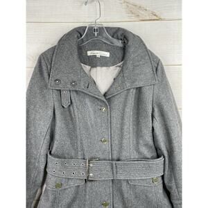 Kenneth Cole Coat Womens Sz 8 Gray Belted Wool Blend Trench Coat Satin Lined