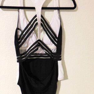 Kenneth Cole Cutout Mesh Wide Straps One-Piece Sexy Swimsuit Black White XL