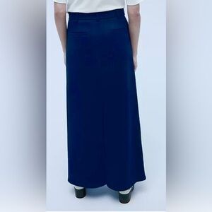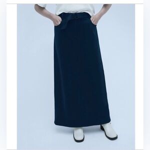 Stunning midnight navy blue luxurious belted maxi suede skirt