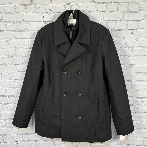 Kenneth Cole Double Breasted Wool Blend Peacoat Jacket, Size Large, Black, NWOT