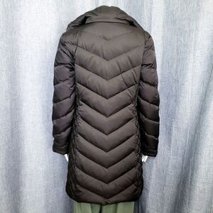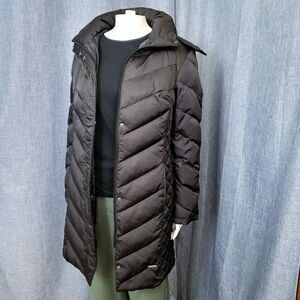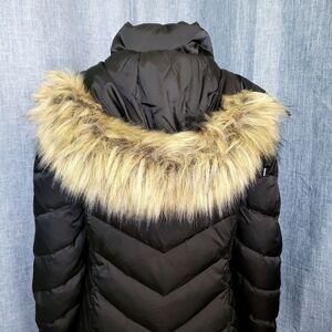 Kenneth Cole Down Puffer Coat Faux Fur Trim Hood Midi Black Women's S