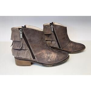 Kenneth Cole Downtown Girl Bronze Synthetic & Leather Fringe Ankle Boots 5.