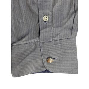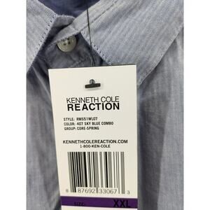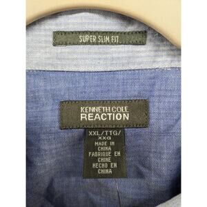 Kenneth Cole Dress Shirt XXL Blue Button Up Super Slim Collared Striped Workwear