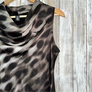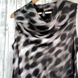Elevate your style with this chic sleeveless cowl neck top. Featuring a sophisticated black and gray pattern, this top is perfect for any occasion. Pair it with your favorite bottoms for a complete look.