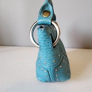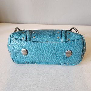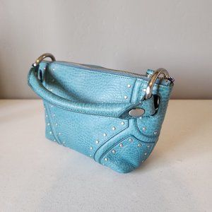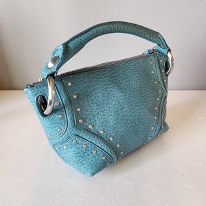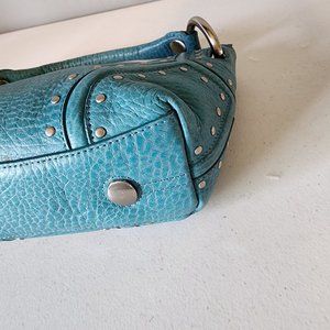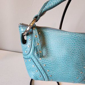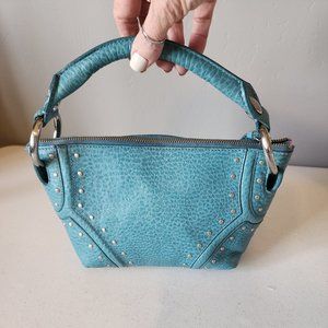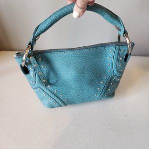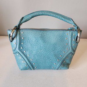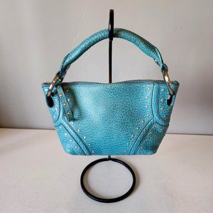 "EUC" Super Cute Teal Leather Mini Bag By Kenneth Cole. Single Top Handle w/4" Drop, Zip Top Closure, Stud & Ring Accents, Clean Textile Lining w/1 Zip & 2 Slip Pockets, Bag Measures 7 X 11 Across Top X 3, Great Condition, No Wearing/Corners/Stains:) Rt.79.00 approx. Perfect Event/Party/Date Night Bag!