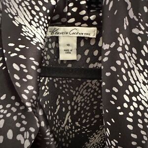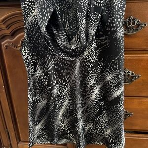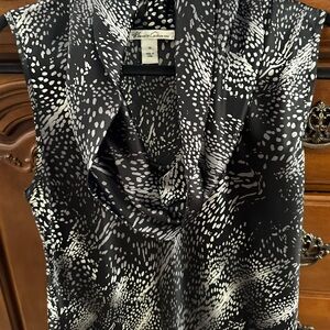 This stylish women's top features a chic black and white pattern, perfect for any occasion. Its elegant design offers a sophisticated look. Like new.