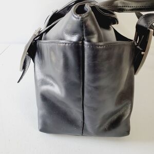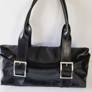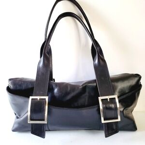 Kenneth Cole Fold Play Leather Satchel Black Leather Double Strap Shoulder Bag.