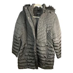 Kenneth Cole Full Length Parka Faux Fur Hooded Jacket in Black Size XL NWT