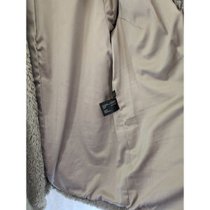 Beautiful faux fur long sleeve open cardigan jacket. 2 pocket. Lined. Fuzzy beige color. Oversized slouch. Kenneth Cole teddy coat
