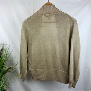 Kenneth Cole Gold Metallic Open Front Cropped Knit Sweater L Large NEW