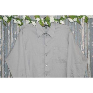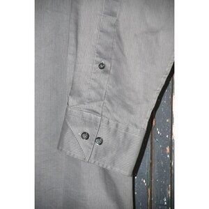 Kenneth Cole Gray Micro Striped Dress Shirt Size XL 17 32-33 Slim Fit Career