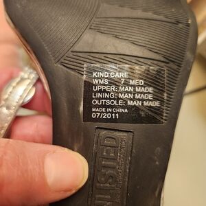 Buckle strap, open-toe, approximately 2" heel with gem design.