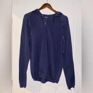 Kenneth Cole Hooded Shirt Pullover Casual Round Neck Blue Cabincore Men XL