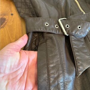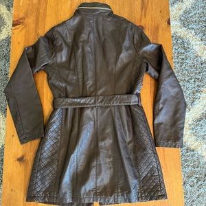 Great Jacket! Kenneth Cole Brown jacket with pockets and belt. Great accents on this jackets too. Love the longer length on this too. Lined and cozy. Size is Medium and is 32” from neck to hemline. Excellent condition, worn just a handful of times.